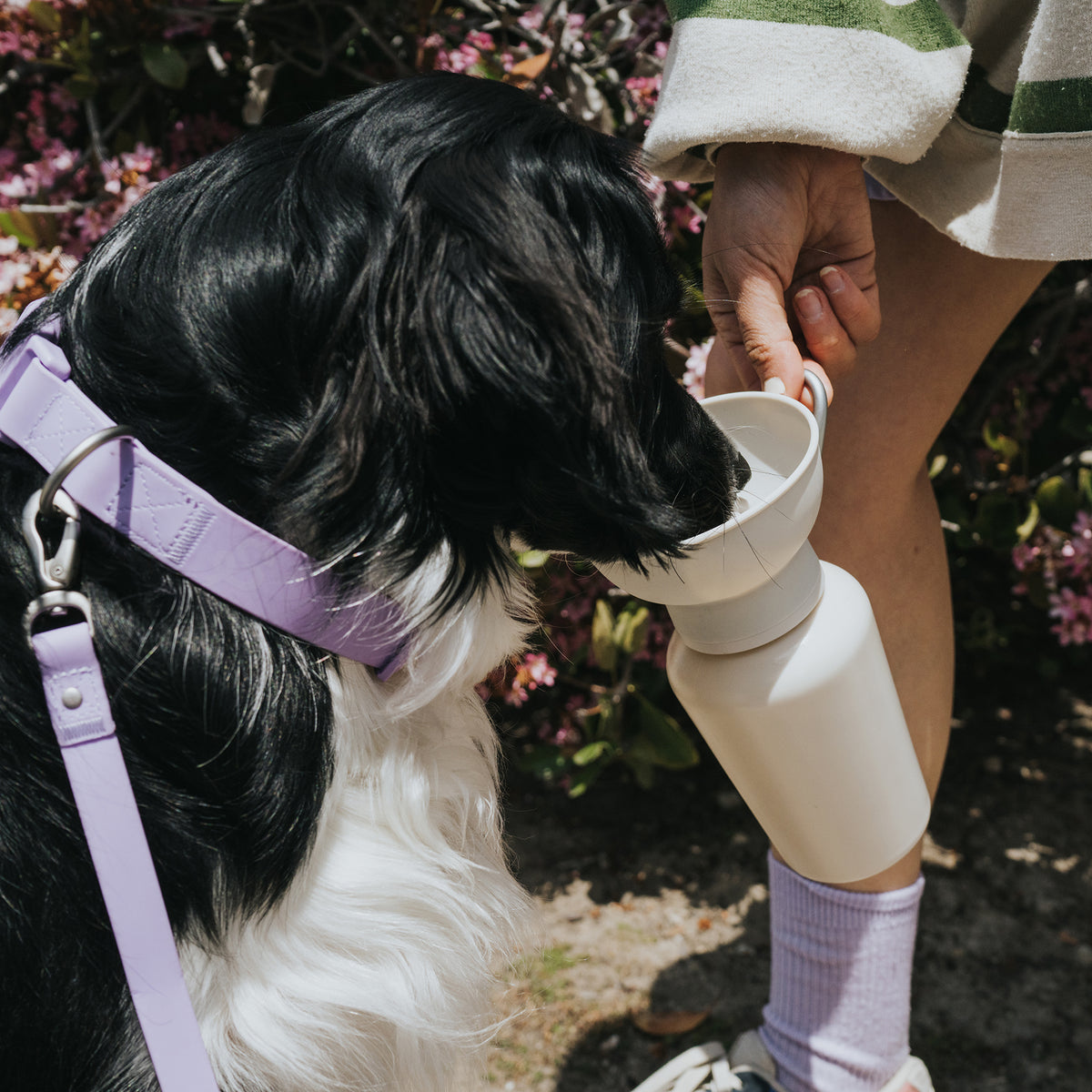 An innovative and convenient water bottle designed with your dog’s hydration needs in mind, ensuring they stay refreshed and hydrated on-the-go. With a leak-proof design and built-in foldable silicone drinking bowl, you can easily give your dog fresh water whenever they need it, no matter where you are. It's compact, foldable, and lightweight design makes it easy to pack and carry. It fits in most cup holders and easily attaches to your backpack or leash with the included carabiner. Whether you're out exploring a hiking trail, visiting the beach, going on a road trip, or just taking a stroll around the neighborhood— your dog will have fresh water to stay hydrated and healthy.