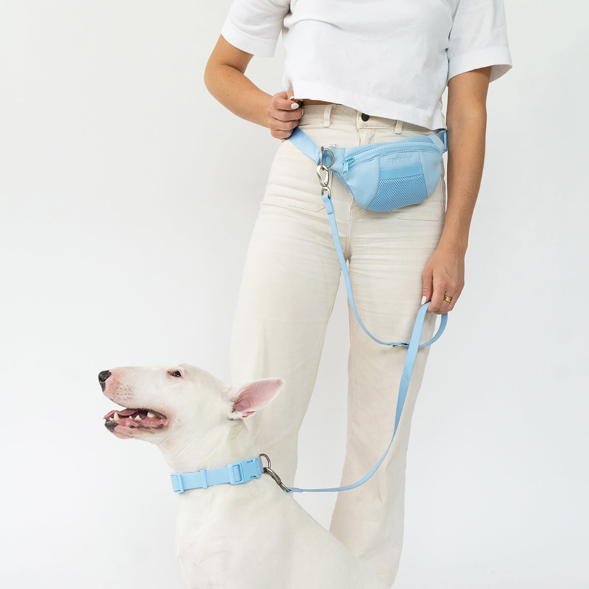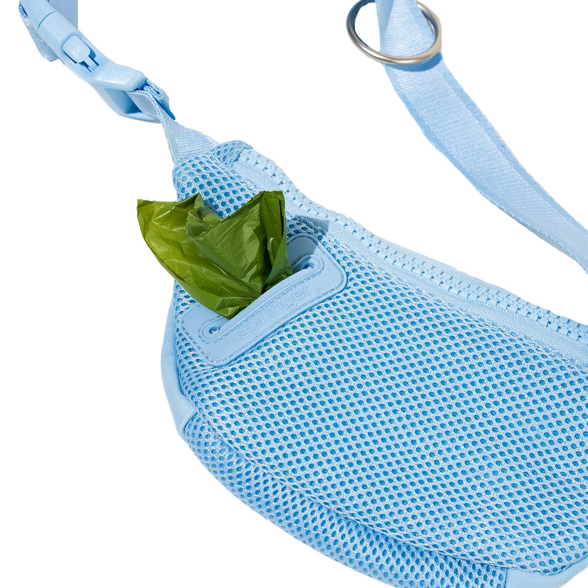 Upgrade your dog walking game with the Hands-Free Dog Sling Bag with Leash! With its durable construction, innovative design, and hands-free mobility, it's the perfect accessory for any adventure with your pup. Designed to hold all your essentials, including your phone, cards, and keys, as well as your dog's things. With a built-in poop bag dispenser and a mesh pocket for treats, you can easily access everything you need to keep your pup happy and healthy on the go. The included 4ft dog leash attaches directly to the bag, allowing your dog to roam by your side while you keep your hands free. When you're finished with your walk, simply unclip the leash from the bag and go about your day with all your essentials close at hand.